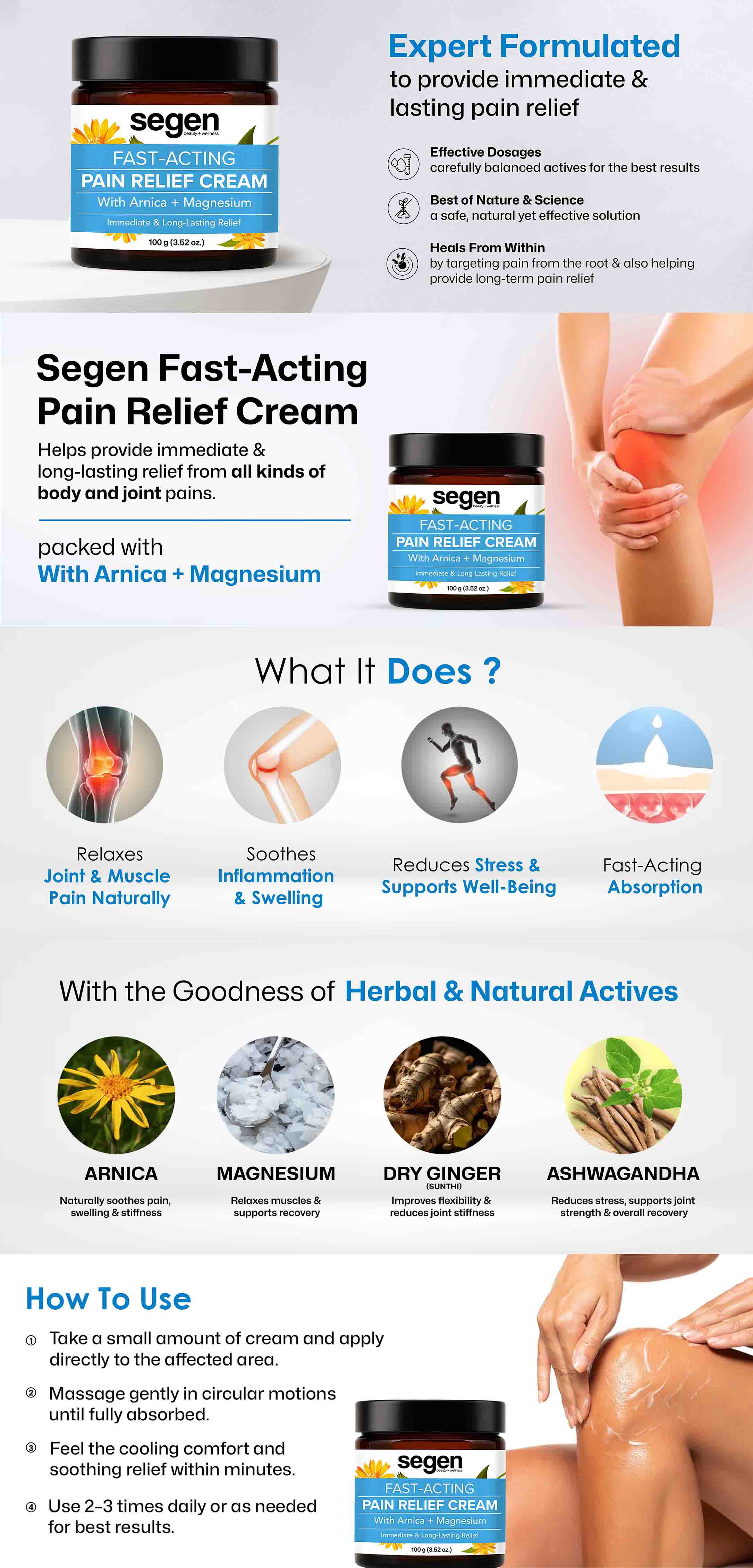 Segen Pain Relief Cream 100g | Fast-Acting Arnica & Magnesium Cream for Muscle & Joint Pain