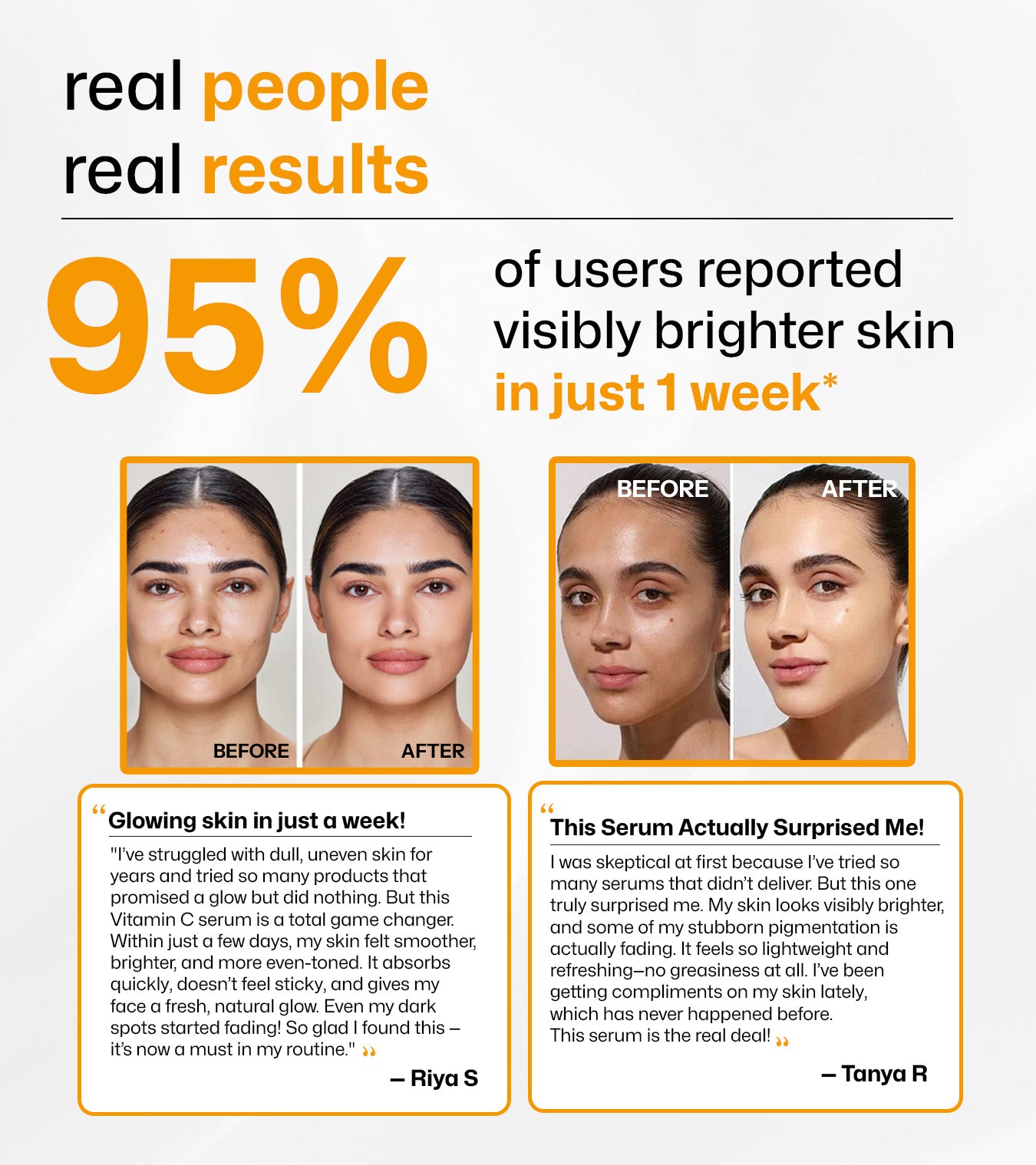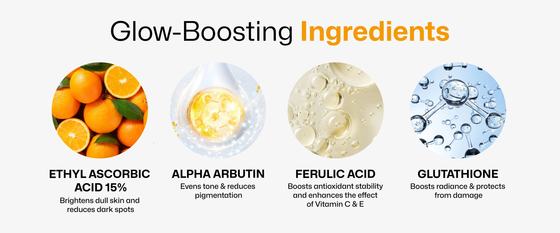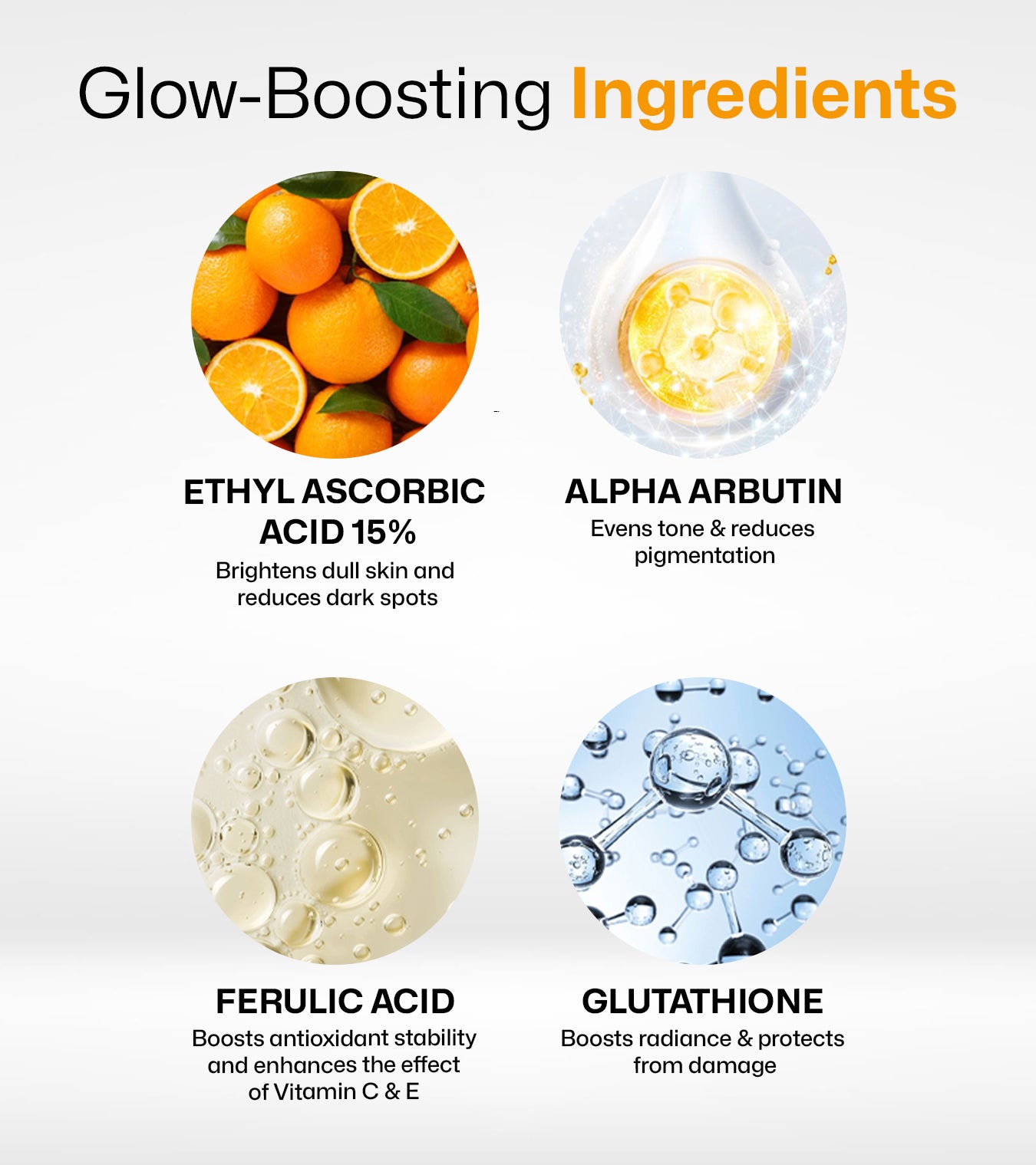 This brightening serum is powered by 15% Ethyl Ascorbic Acid, the most stable and effective form of Vitamin C, combined with Alpha Arbutin, Ferulic Acid, and Glutathione to deliver a visibly radiant glow in just 5 days.