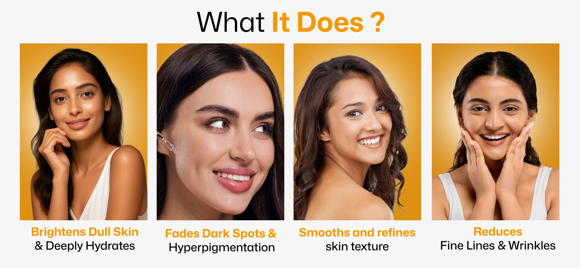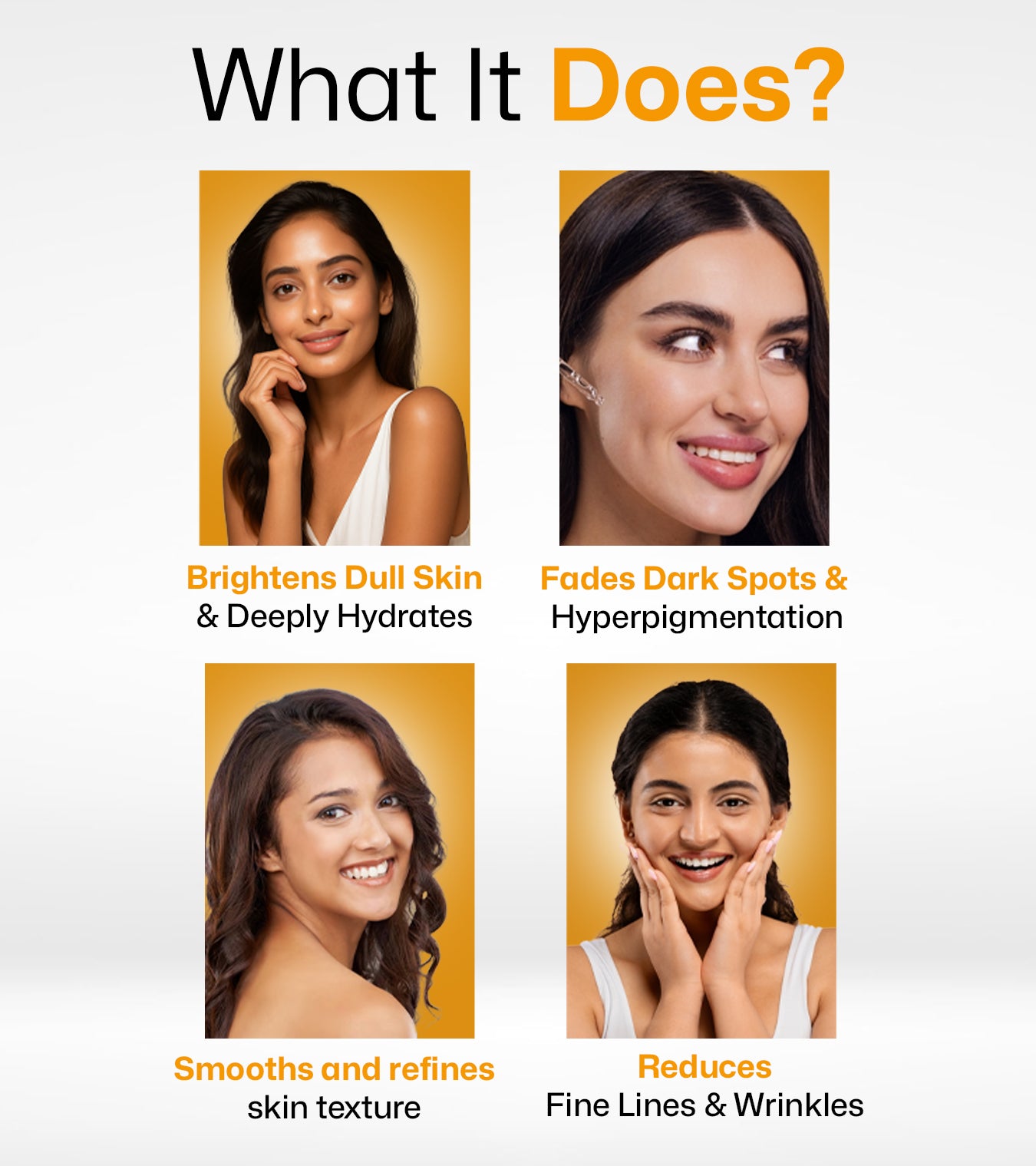 The potent formula works 4× deeper to fade dark spots, reduce pigmentation, even out skin tone, and enhance overall luminosity—faster than traditional Vitamin C serums. Lightweight and non-greasy, it absorbs quickly while nourishing the skin barrier, making it ideal for all skin types.