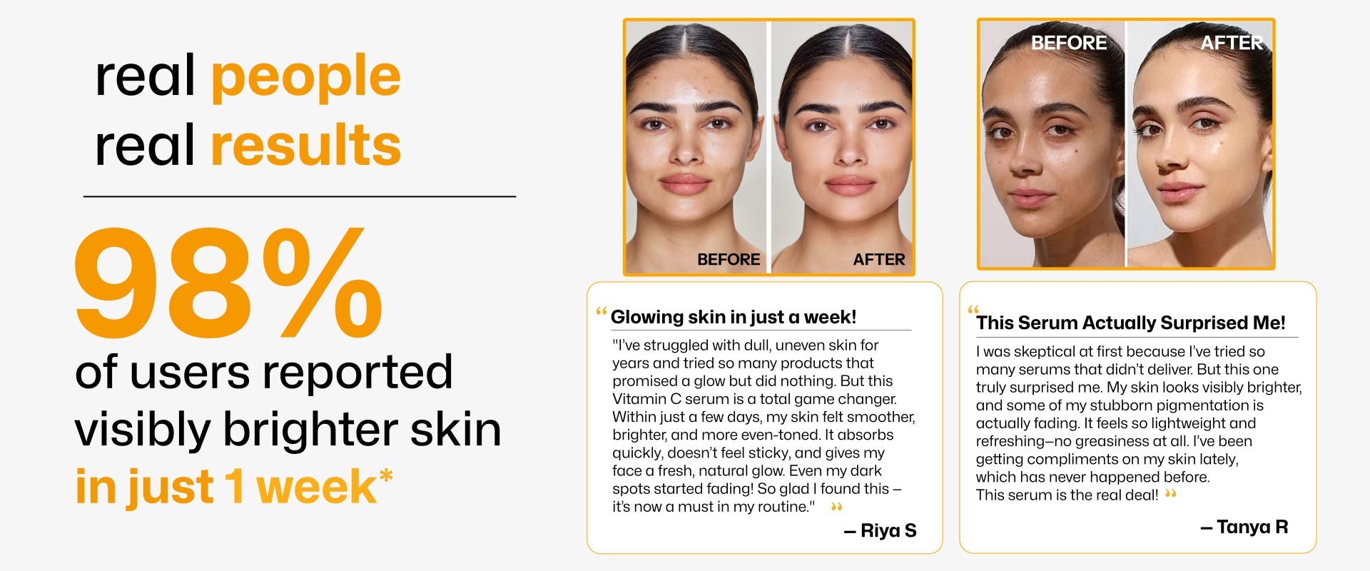 Experience 5 glowing benefits in 5 weeks—brighter, smoother, firmer, clearer, and more radiant skin with every us